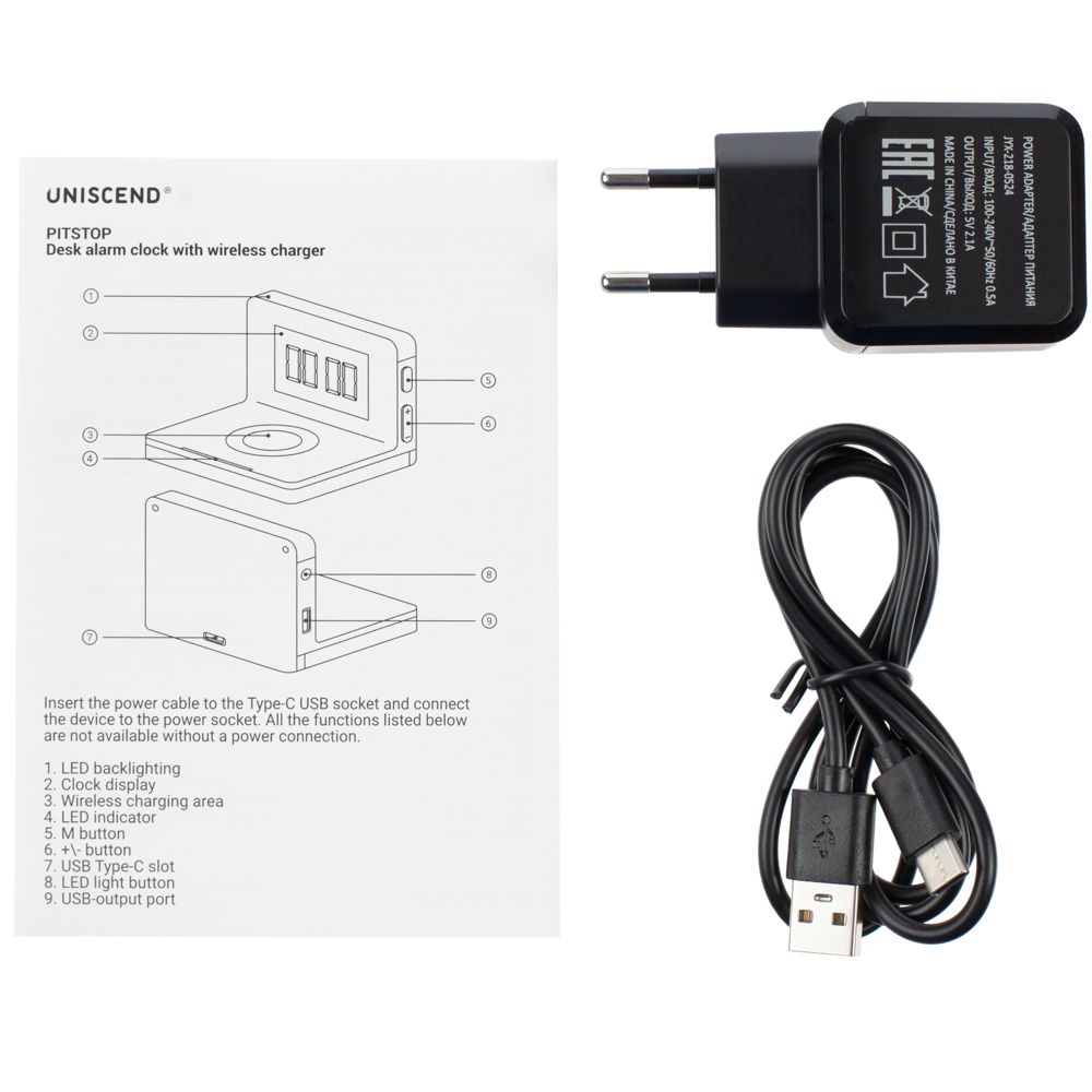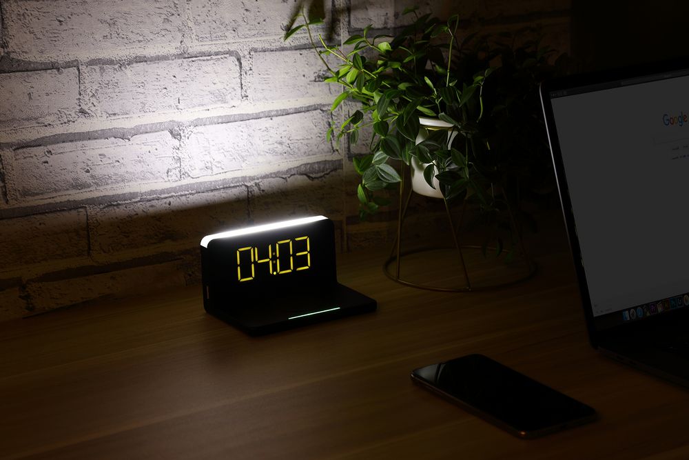 - Часы настольные с беспроводным зарядным устройством Pitstop, черные