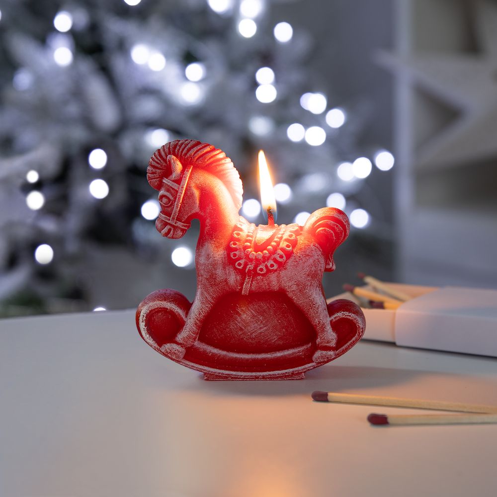 - Свеча фигурная «Лошадка-качалка», красная