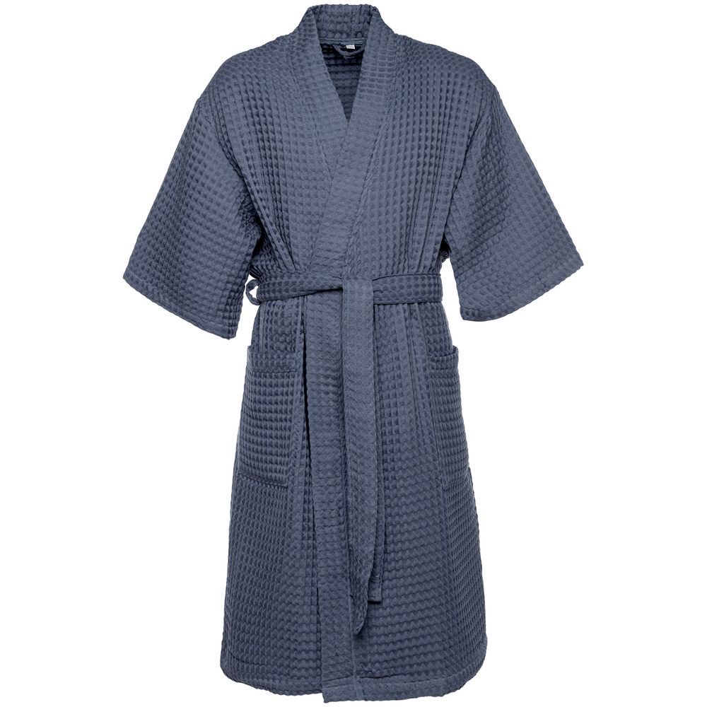 - Халат вафельный мужской Boho Kimono, темно-синий (графит)