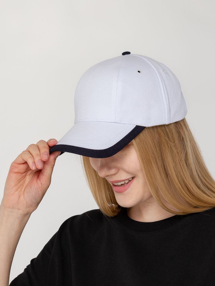 - Бейсболка Honor, белая с темно-синим кантом