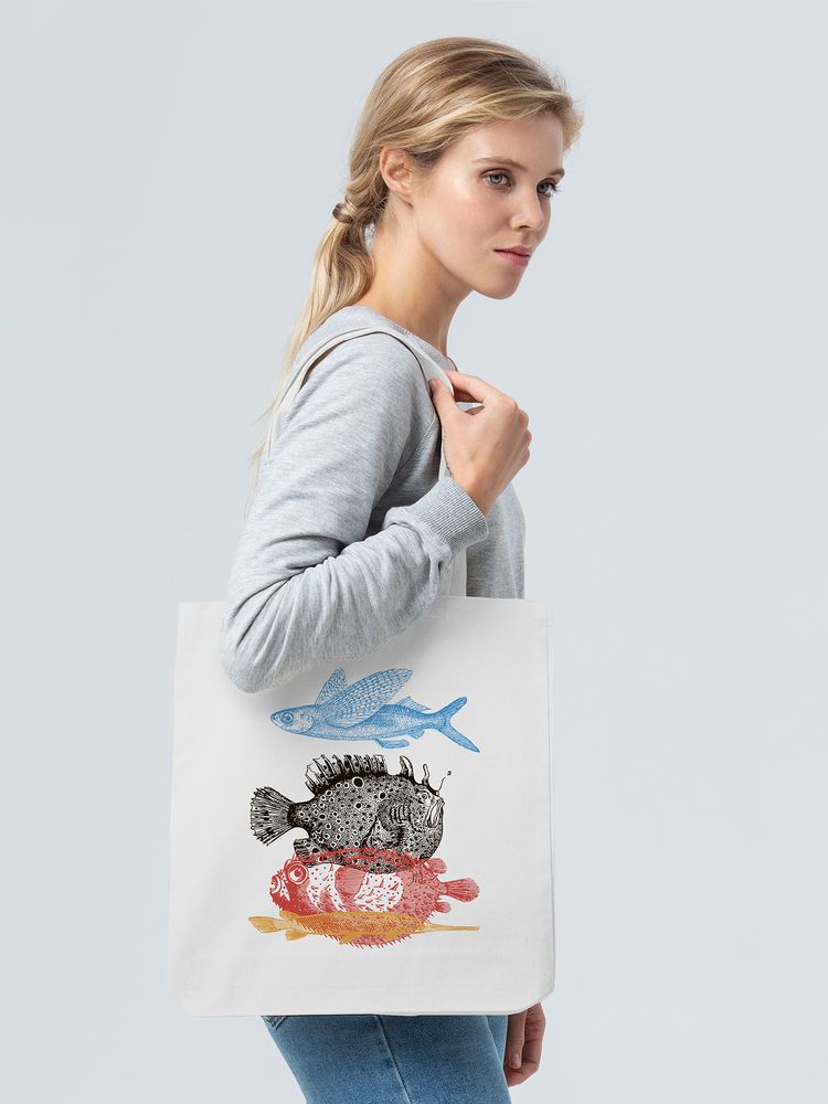 - Холщовая сумка «Морские обитатели», молочно-белая