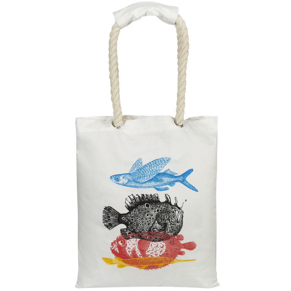 - Холщовая сумка с ручками-канатами «Морские обитатели», белая