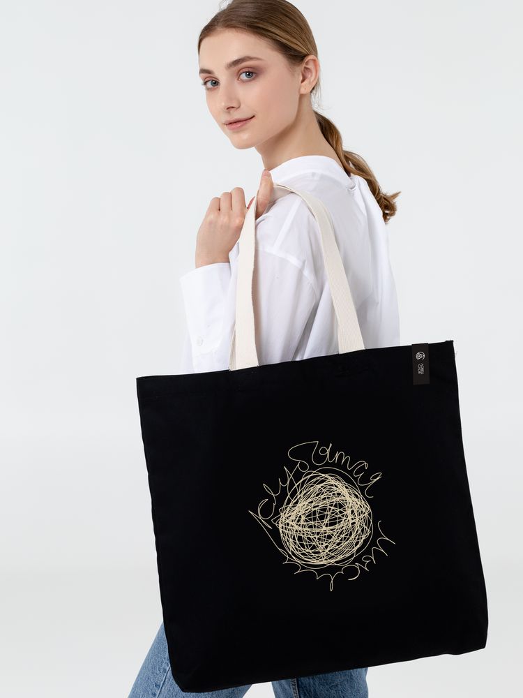 - Холщовая сумка с вышивкой «Клубятся мысли», черная