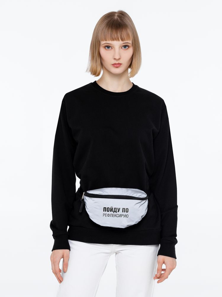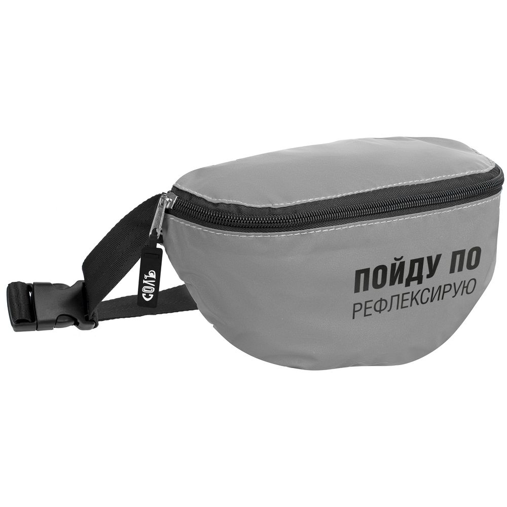 - Поясная сумка «Пойду порефлексирую» из светоотражающей ткани, серая