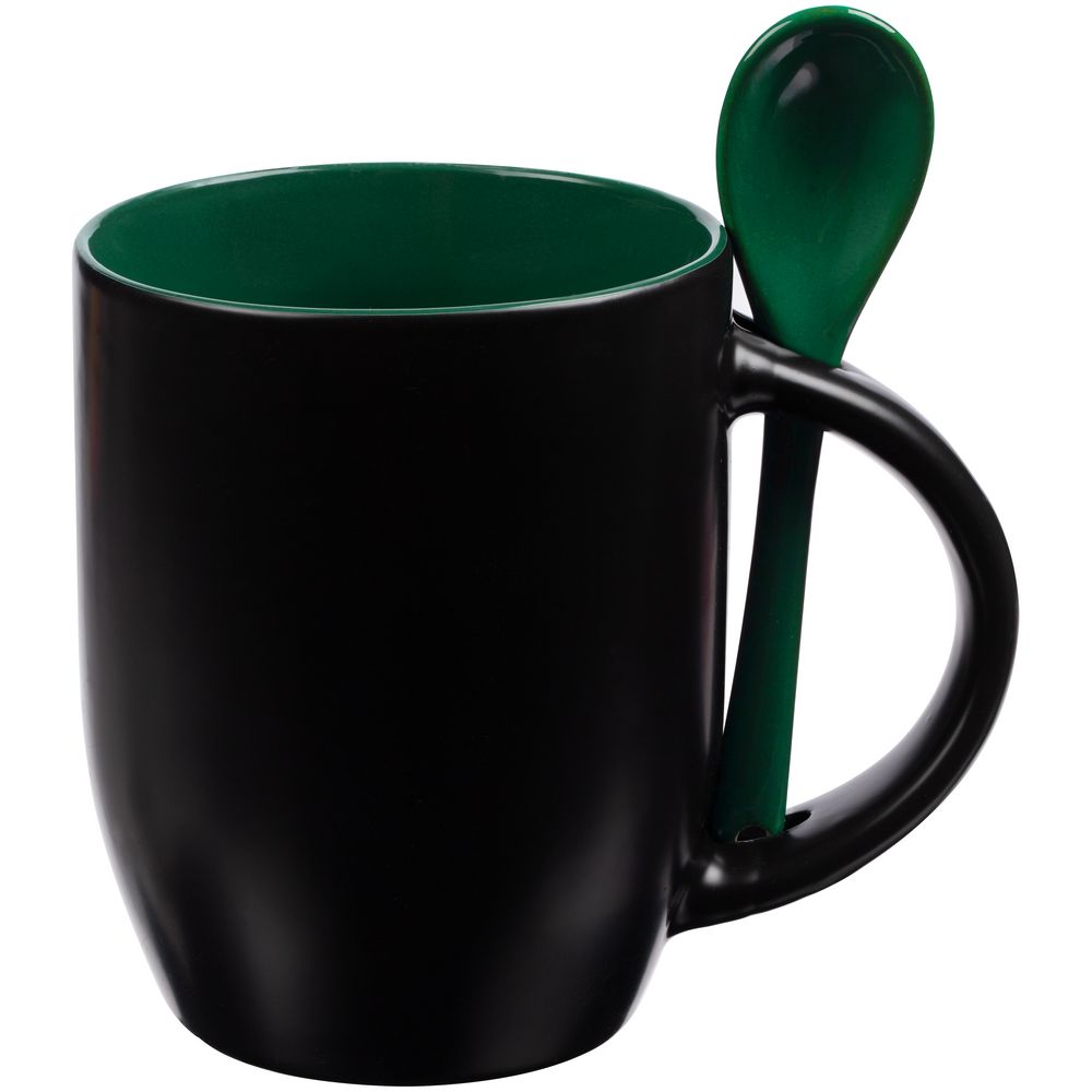 - Кружка-хамелеон Melty с ложкой, черная с зеленым