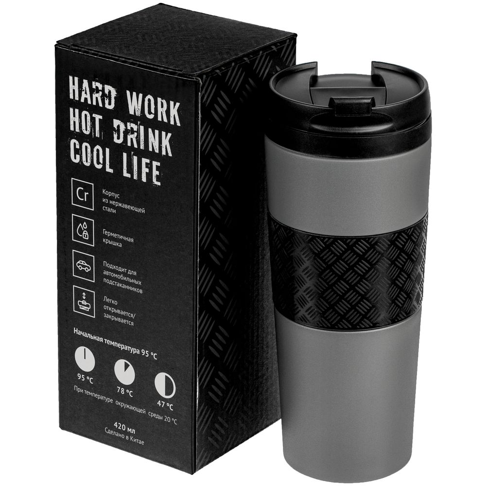 - Термостакан Hard Work, вакуумный, темно-серый (графит)