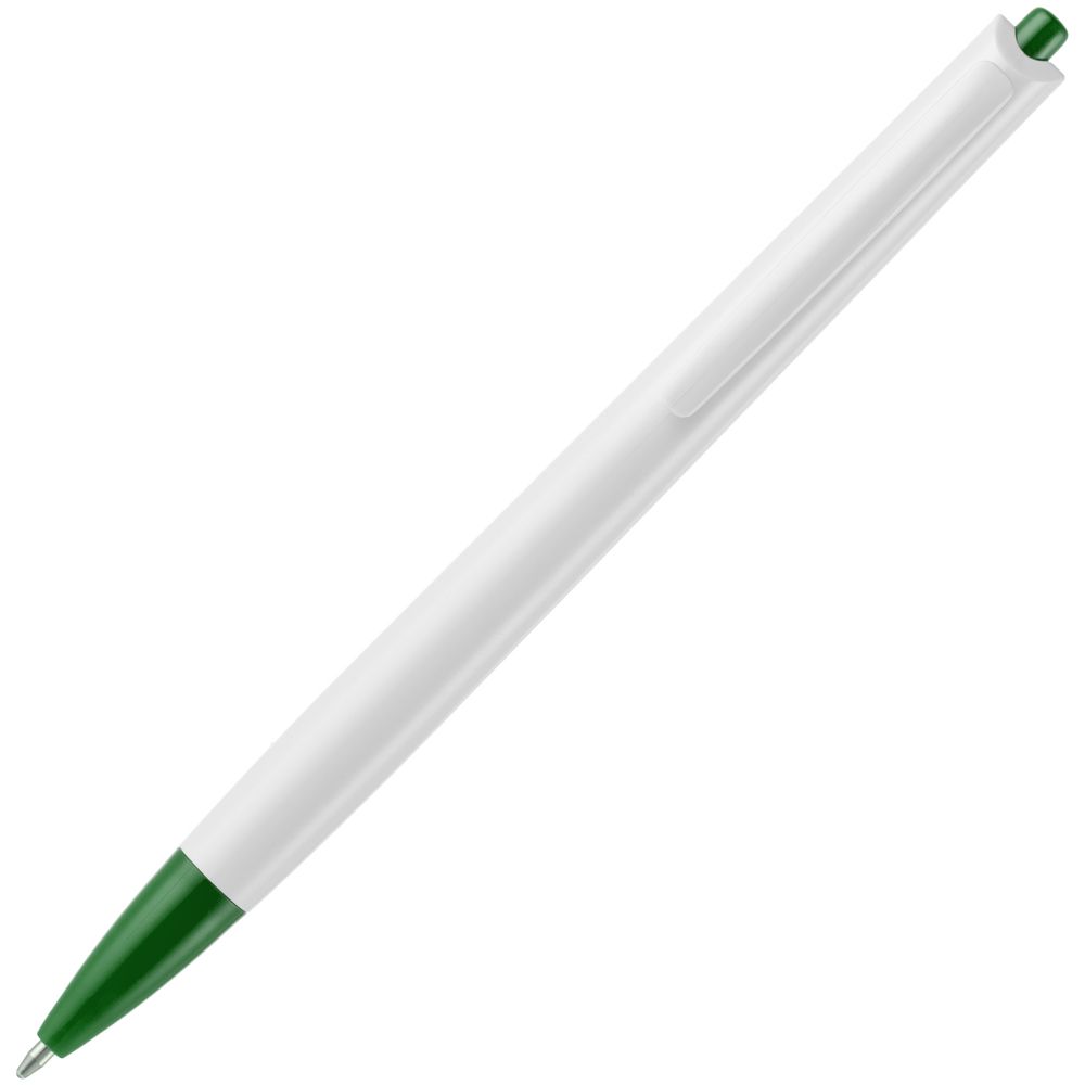 - Ручка шариковая Tick, белая с зеленым