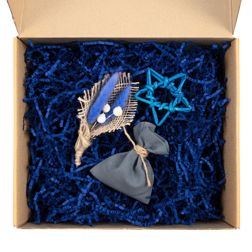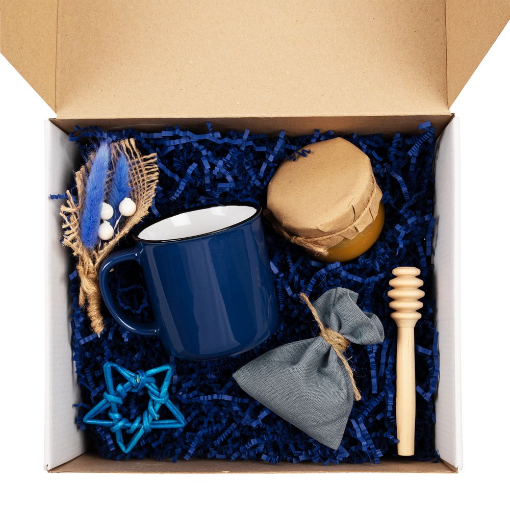 - Коробка Grande, крафт с синим наполнением